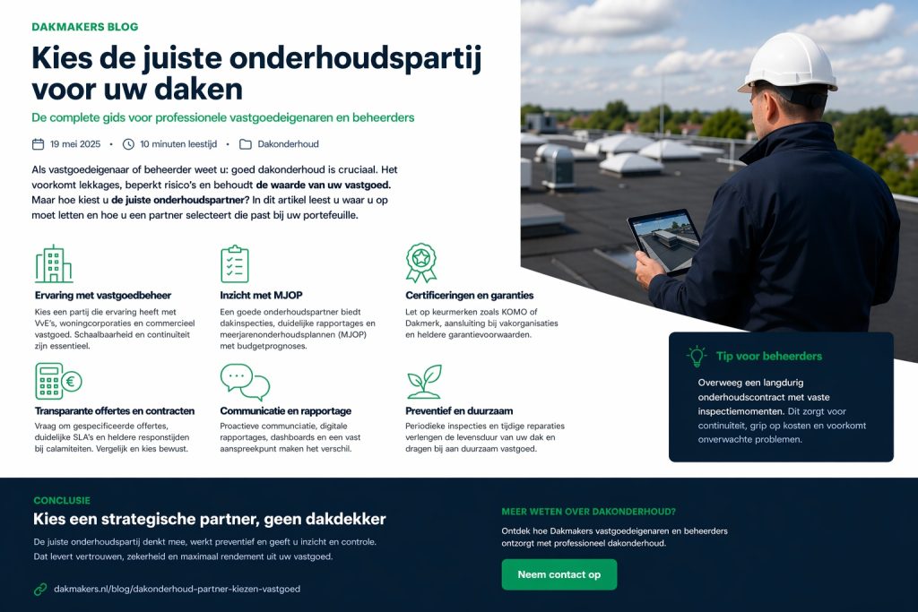 Als eigenaar, verhuurder of vastgoedbeheerder heeft u goed zicht op uw pand, maar het dak krijgt vaak pas aandacht wanneer er een probleem ontstaat. Toch is het dak een cruciaal onderdeel van elk gebouw en bepalend voor veiligheid, comfort en waardebehoud.