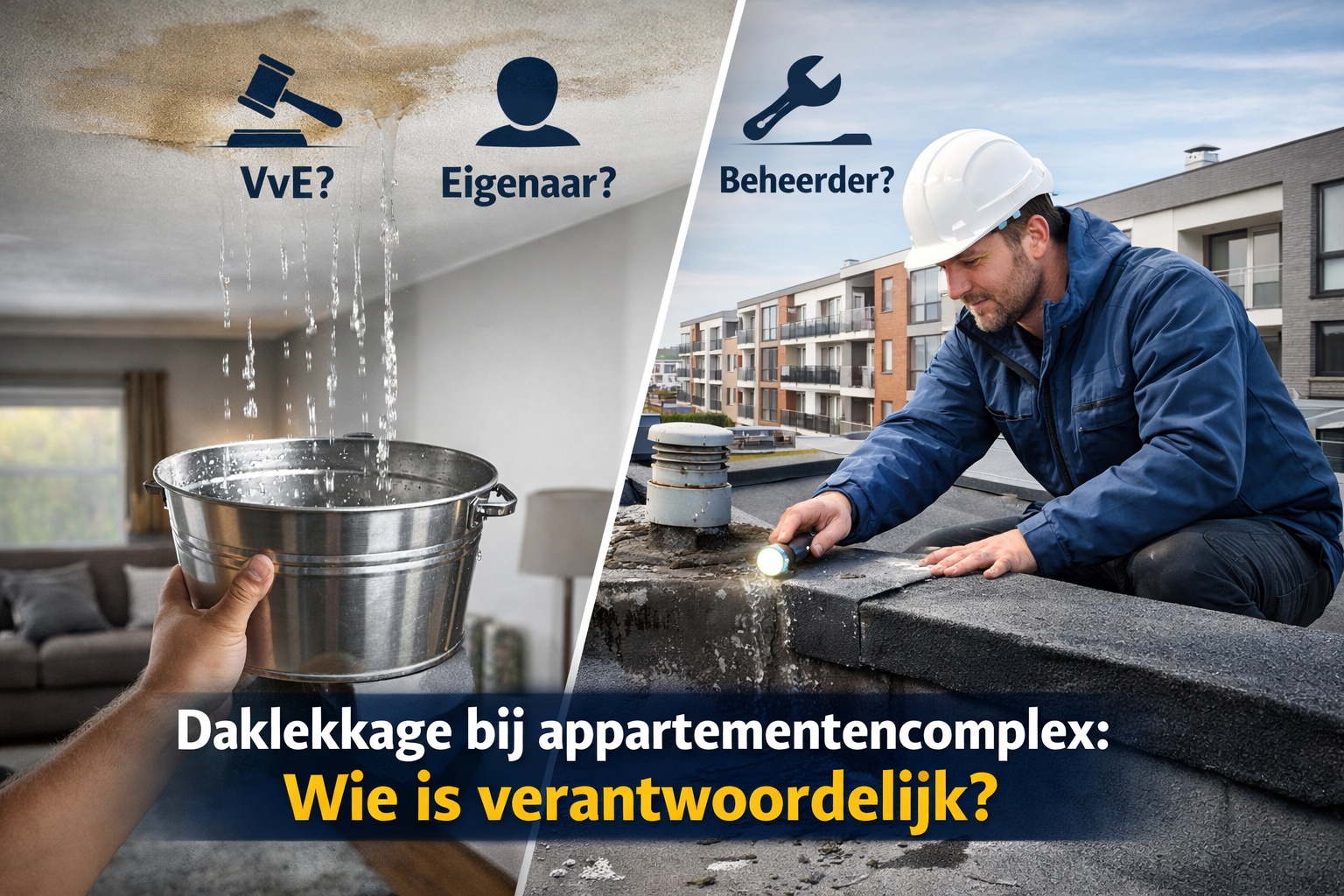 Een daklekkage in een appartementencomplex zorgt vaak niet alleen voor schade, maar ook voor onduidelijkheid. Wie is verantwoordelijk voor de reparatie? De bewoner, de VvE of de beheerder? In dit artikel leggen we helder uit hoe de verantwoordelijkheden verdeeld zijn en wat je als VvE of vastgoedbeheerder het beste kunt doen.